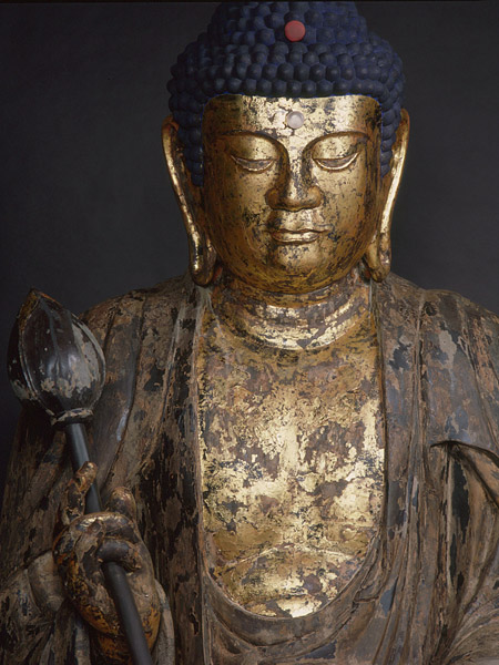 穏やかな面相のこの木像は、鎌倉時代初期の作とされ、昭和54年2月15日付で静岡県彫刻文化財に指定されたのをうけ、同57年から2年がかりで解体修復されました。高さ203cm、膝割169cm、スギを主体にマツなどを材料にした寄木造りで、一般には50~60個であるはずの木片が、大小2,000個にも及ぶ事が分かりました。